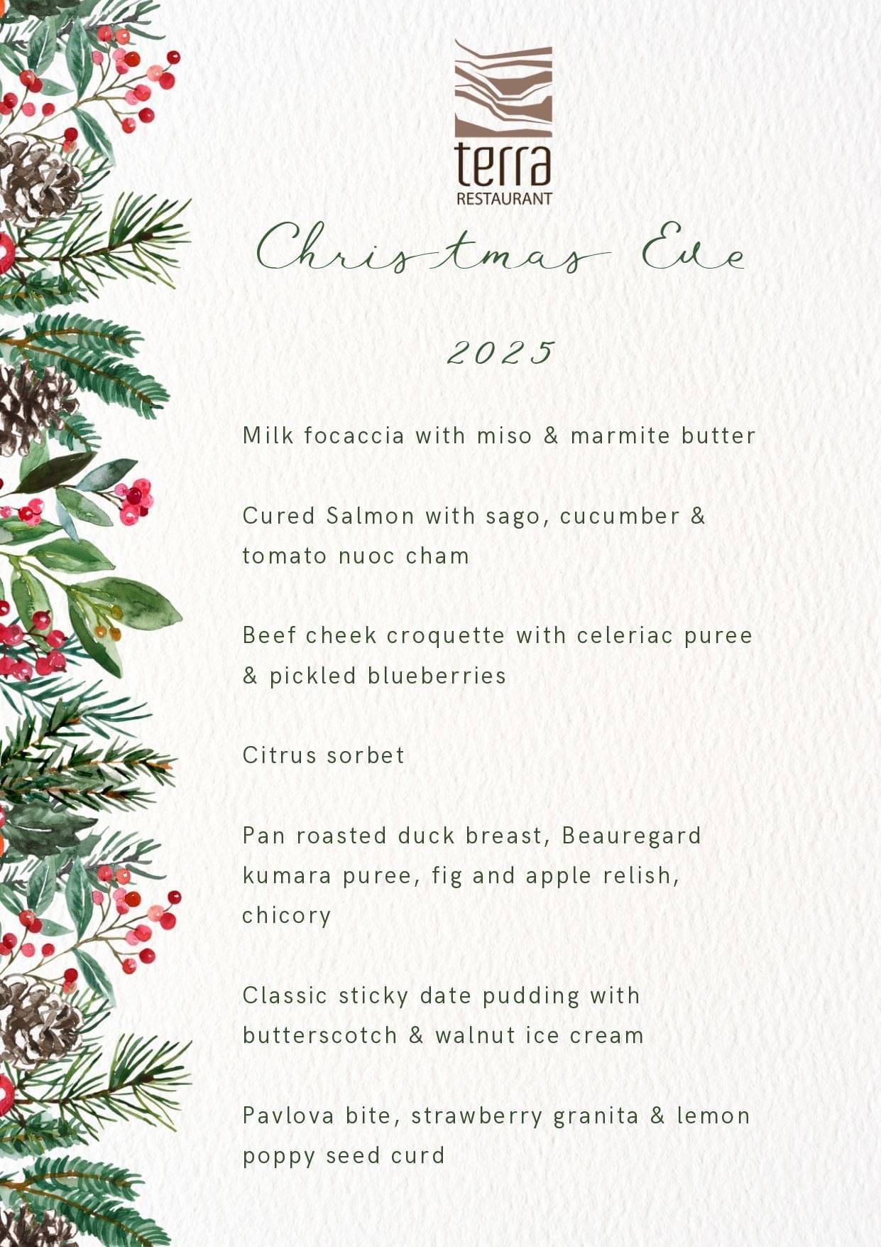 A refined, cozy celebration featuring festive classics and Terra signatures—perfect for gathering with family and friends.