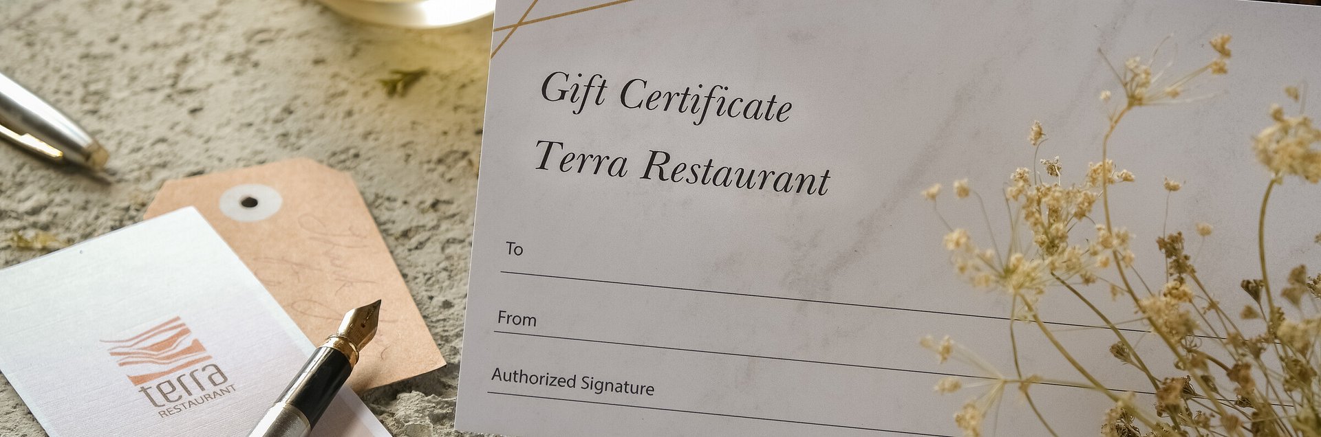 We are Restaurant association members. Card vouchers can be purchased from most supermarkets and can be redeemed at Terra restaurant